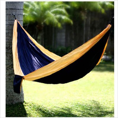 141357 The Charly Artisan Collection is brought to you by Novica in Association with National Geograhic. This beautiful piece was handcrafted by Charly in Indonesia. An artisan story card will be included with your purchase. This hammock is ideal for those who want to travel light, but still want a comfortable night's sleep, says Charly, a seasoned traveler himself. Charly designs a hammock from the same sturdy fabric used for parachutes, which quickly conforms to and cradles the body. The hammock is easily folded and fits into an integrated pocket. Arrives with hanging equipment including nautical ropes and stainless steel hooks. ; About the Artist: Charly; It all began ten years ago, on the beautiful island of Bali, Indonesia. While traveling with my girlfriend, we slept exclusively in traditional hammocks and, though they were comfortable, unfortunately they were heavy, hard to pack, somewhat fragile and difficult to clean. For all those reasons and many more, I decided to design a more practical type of hammock made from nylon and silk parachute material. Once I created the prototype, I realized just how comfortable, compact and easy to use this new hammock was. My first thought was simply to create a new type of hammock that my friends and I could enjoy. However, over the years my design has gained popularity and a devoted following. Try one and you'll soon realize just how great they are! People often ask 'who is the right person for the hammock?' The answer is simple all people from all walks of life, men, women and children alike!'' Features: -Hammock. -100pct nylon construction. -Hand crafted artisan quality. -Holds up to 300 lbs. -Hanging accessories included.