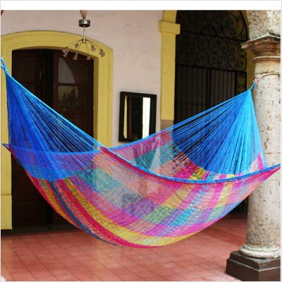 73813 The Maya Artists of the Yucatan Artisan Collection is brought to you by Novica in Association with National Geograhic. This beautiful piece was handcrafted by Maya Artists of the Yucatan in Mexico. An artisan story card will be included with your purchase. Vibrant and alluring, this colorful hammock offers cozy comfort. Woven by hand from nylon in traditional looms, this hammock displays the brilliant work of the Maya Artists of the Yucatan. It easily packs for travel to the beach or lake. Extender ropes (measuring 1 meter), hammock hooks (''S'' hooks), and step-by-step instructions included for easy installation. NOTE: Because each is woven individually by hand, measurements may vary by as much as ten centimeters. There may be slight color variations from hammock to hammock. ; About the Artist: Maya Artists of the Yucatan; Long before the Spanish arrived in the Yucatan Peninsula, the Maya preferred to sleep and rest in hammocks. They considered the hammock to be like the loving embrace of a mother, due to the comfortable manner in which the body is held and swung within its cradle. Maya Artists of the Yucatan hand-weave stylized versions of the original Maya hammock. For them, the hammock is a work of art. Their hammocks are incredibly comfortable, easy to maintain, and may be stored just about anywhere. Features: -Hammock. -100pct nylon construction. -Vibrant and alluring. -Colorful hammock offers cozy comfort. -Woven by hand from nylon in traditional looms. -It easily packs for travel to beach or lake. -Extender ropes hammock hooks , and step by step instructions included for easy installation. -Hand crafted artisan quality. -Holds up to 450 lbs. -'S' hooks and extender ropes included.